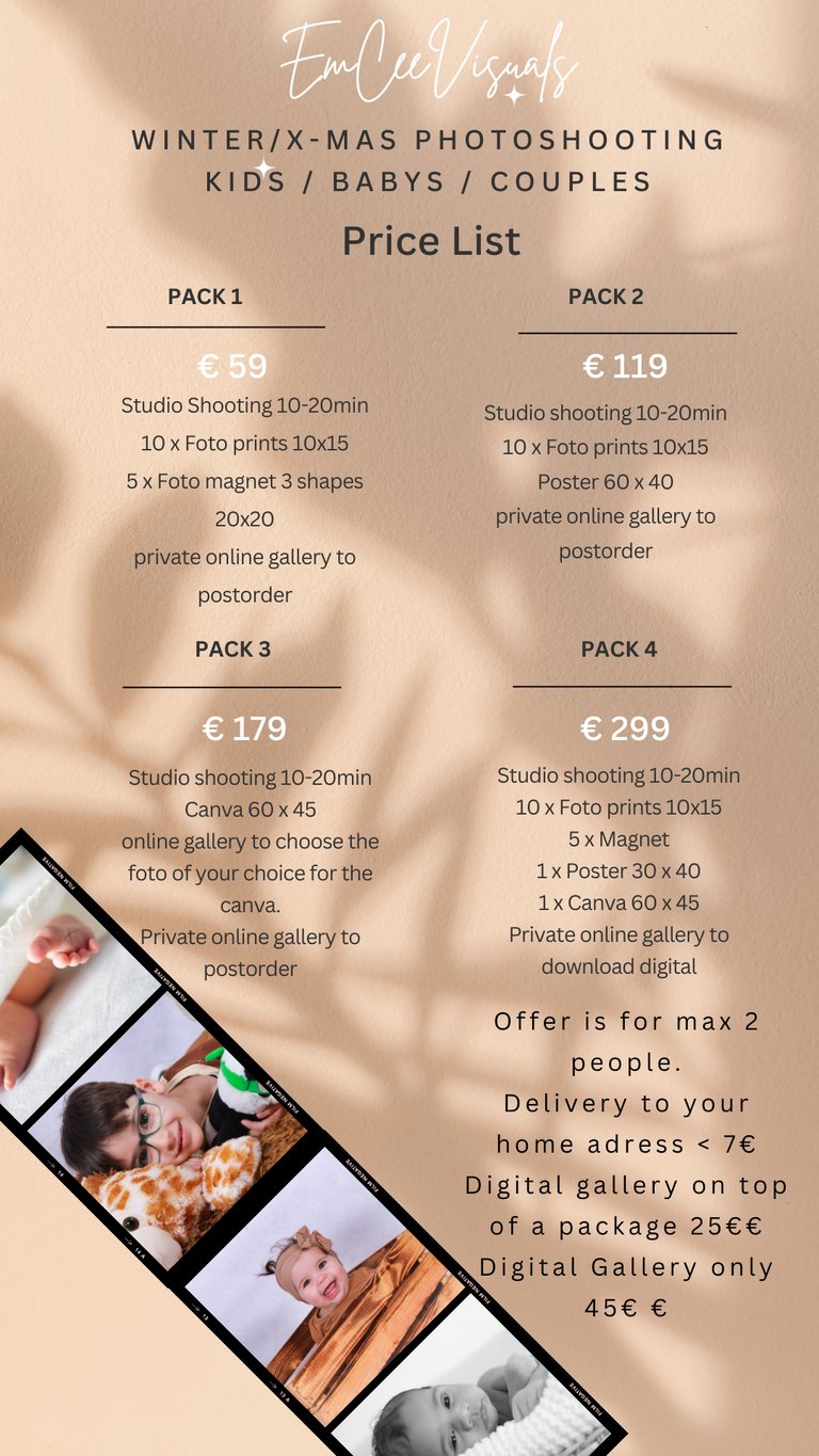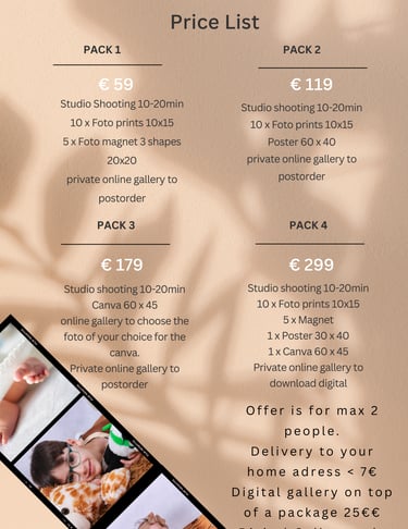 Please choose beforehand your prefered package and let me know, it will safe us time on the day and your child will not get too annoyed;)