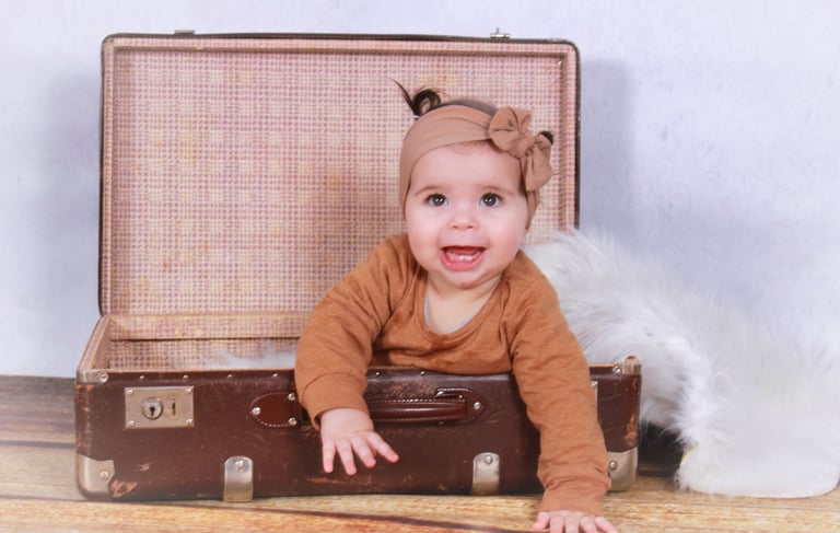 A studio shooting focuses on faces and the person, if you wonder what to wear or how to dress your child: Plain colours are great, patterns and flowers distract from a face, if you mix colours try to stay in harmony, you can find colour harmony lists on google. Shoes or socks are great when clean, otherwise I would suggest going barefoot as it sticks out on a picture.